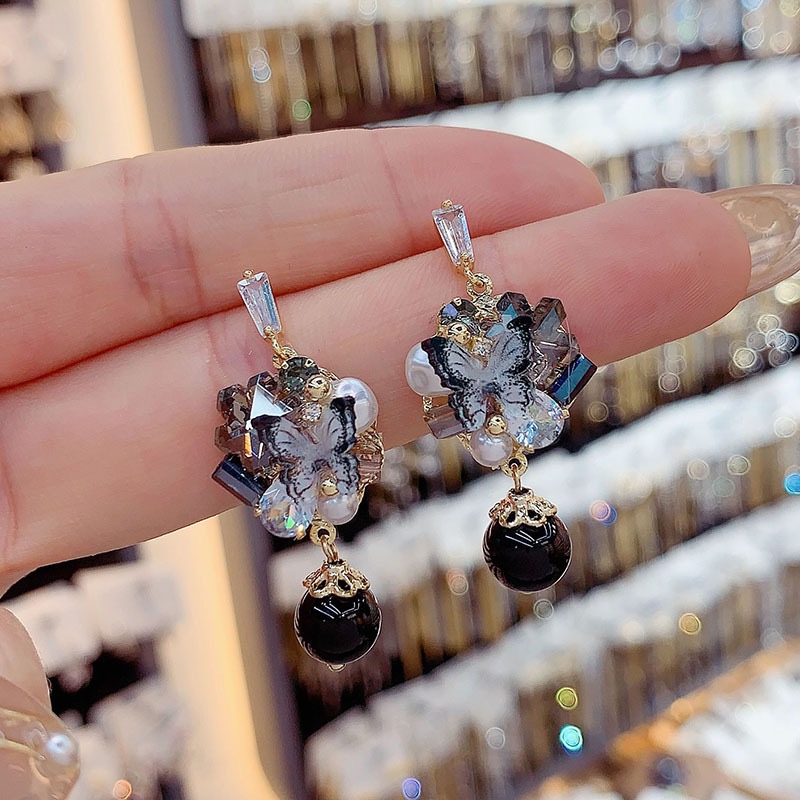 Handmade Retro Niche Long Butterfly Crystal Earrings