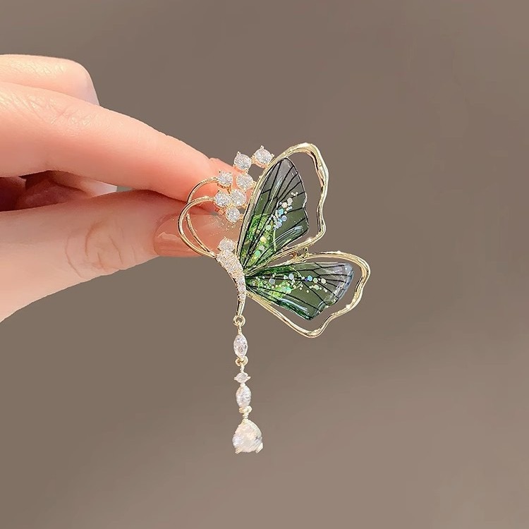 Emerald Brooch from The Wizard of Oz with Translucent Insect Tassel Cheongsam Corsage