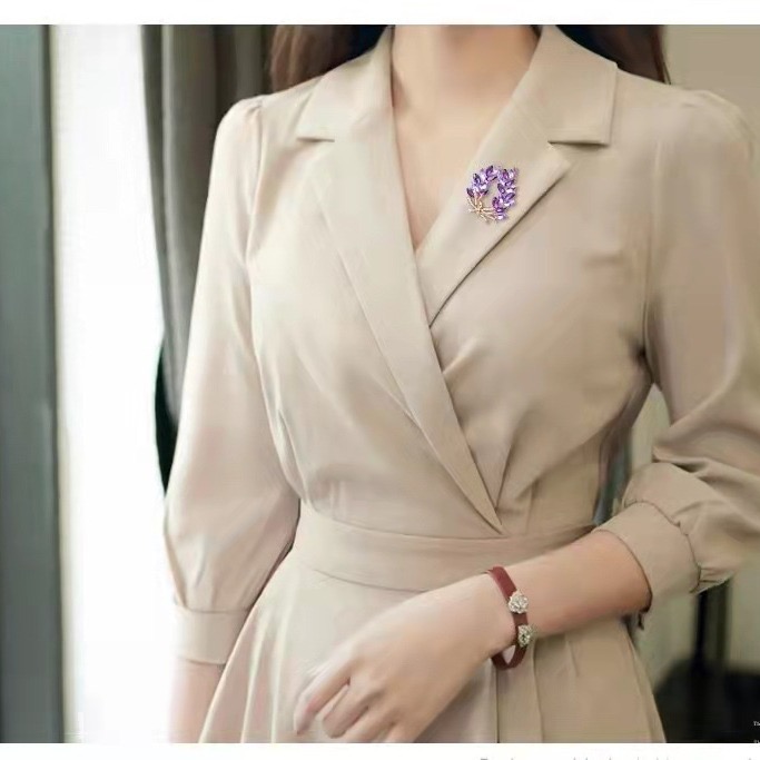 Blue Crystal Wheat Ear Pin Brooch, Versatile and Elegant Blazer Accent