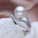 925 Silver Adjustable Pearl Ring with Micro Zirconia Inlays, Gold Plated