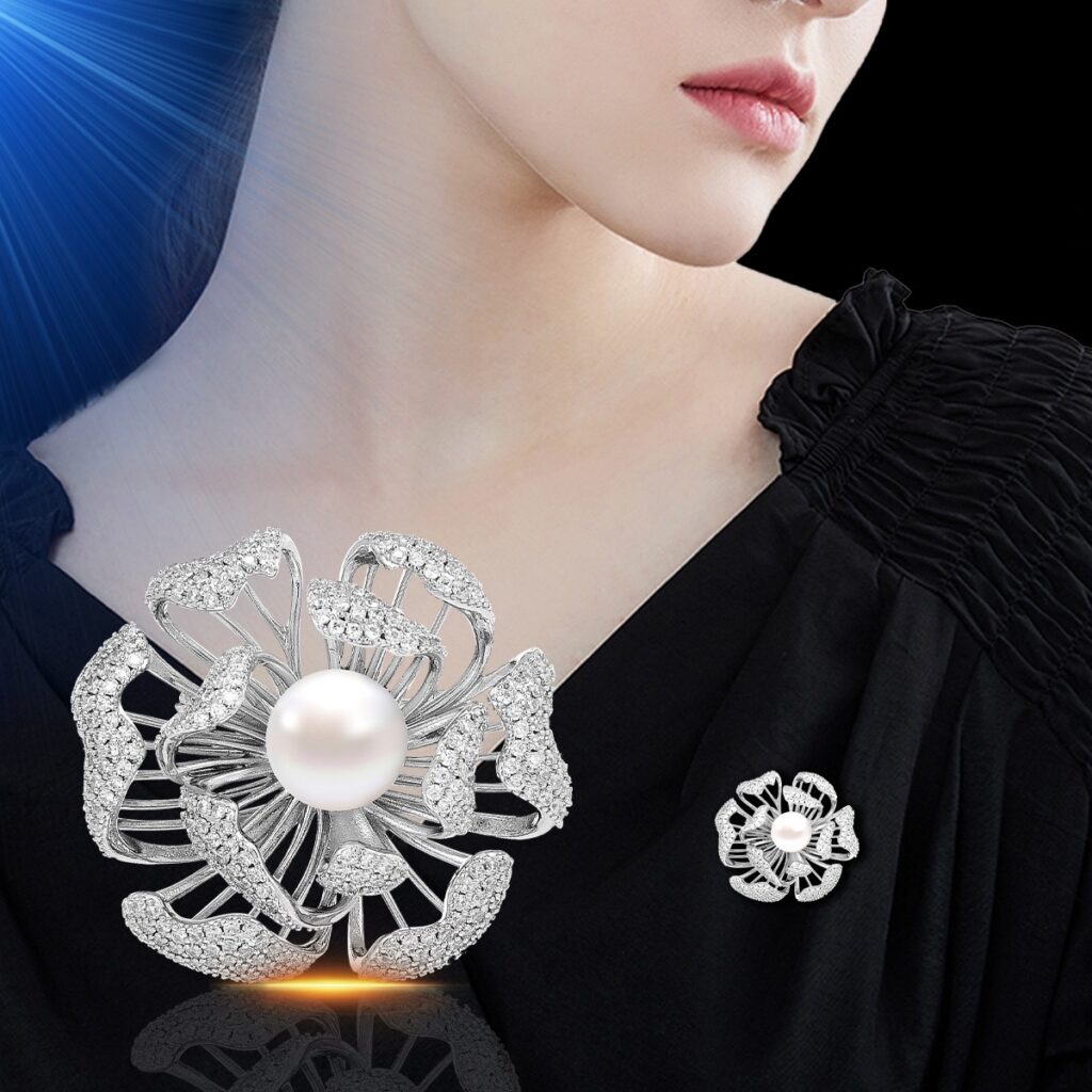 At the Heart of the Jacket, a Delicate Brooch Captures Curious Eyes. With its Metallic Curves and Sparkling Stones, it is Not Just an Accessory — it is a Statement of Style, Elevating Everyday Life into a Runway of Sophistication and Unique Personality.