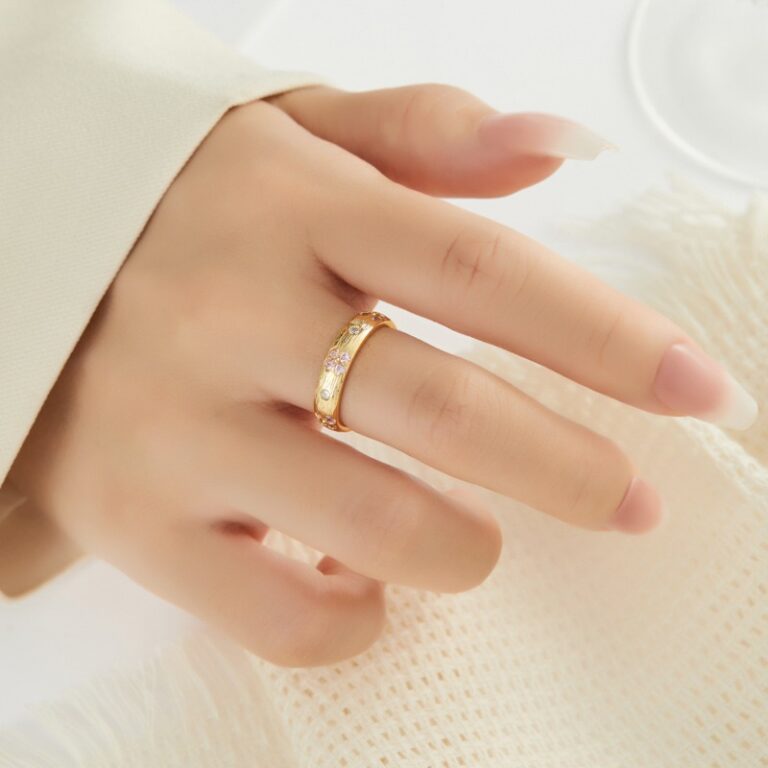 Open Cherry Blossom Ring Japanese Style in Brushed Gold