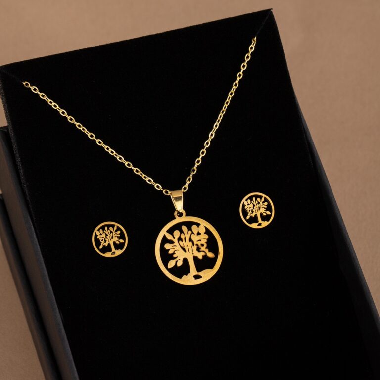 Stainless Steel Necklace and Earrings Set with Pendant I