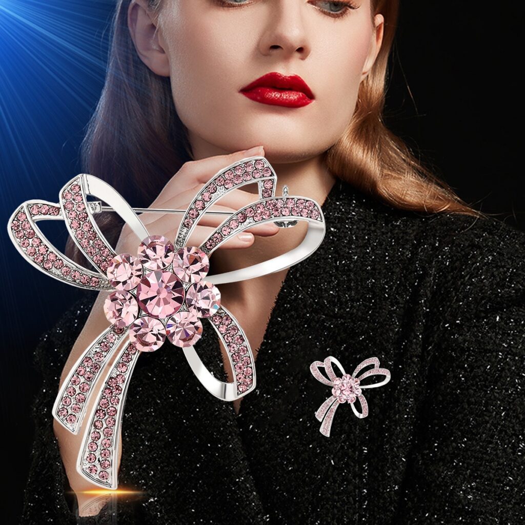 At the Heart of the Jacket, a Delicate Brooch Captures Curious Eyes. With its Metallic Curves and Sparkling Stones, it is Not Just an Accessory — it is a Statement of Style, Elevating Everyday Life into a Runway of Sophistication and Unique Personality.