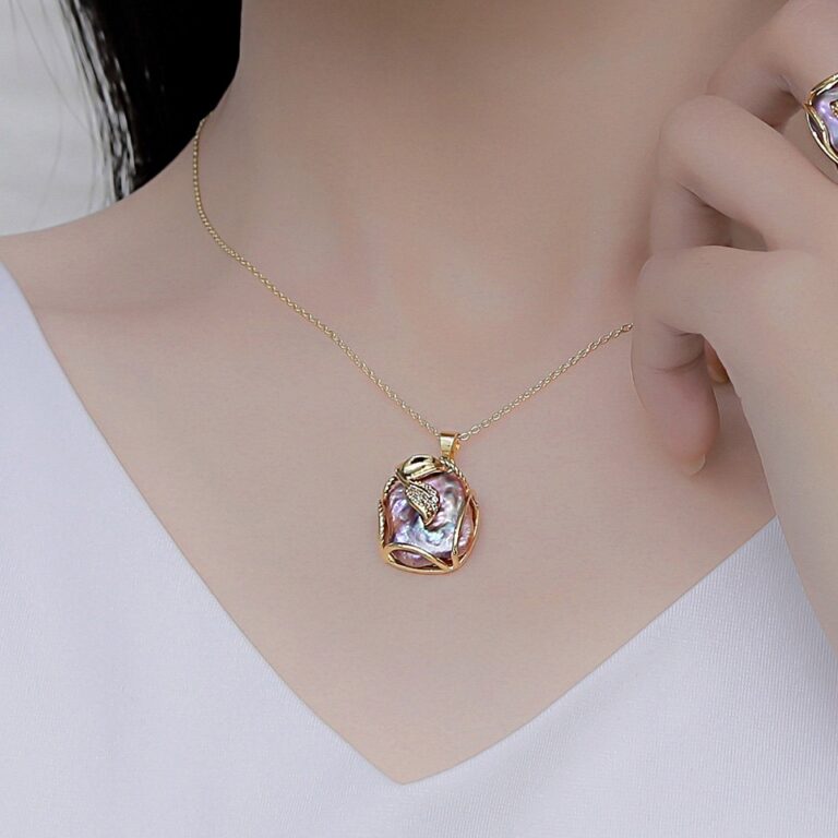 Necklace with Natural Freshwater Baroque Pearl Pendant, Luxury Retro